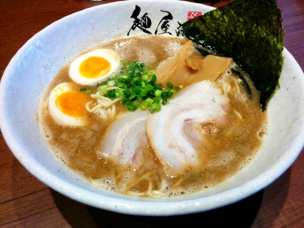 香ばしくコクのある濃い味の「濃厚魚介豚骨スープ」。私は好きだけど、人によってはちょっと濃いぐらい。テーブル横の割りスープで調整するといいのかな??