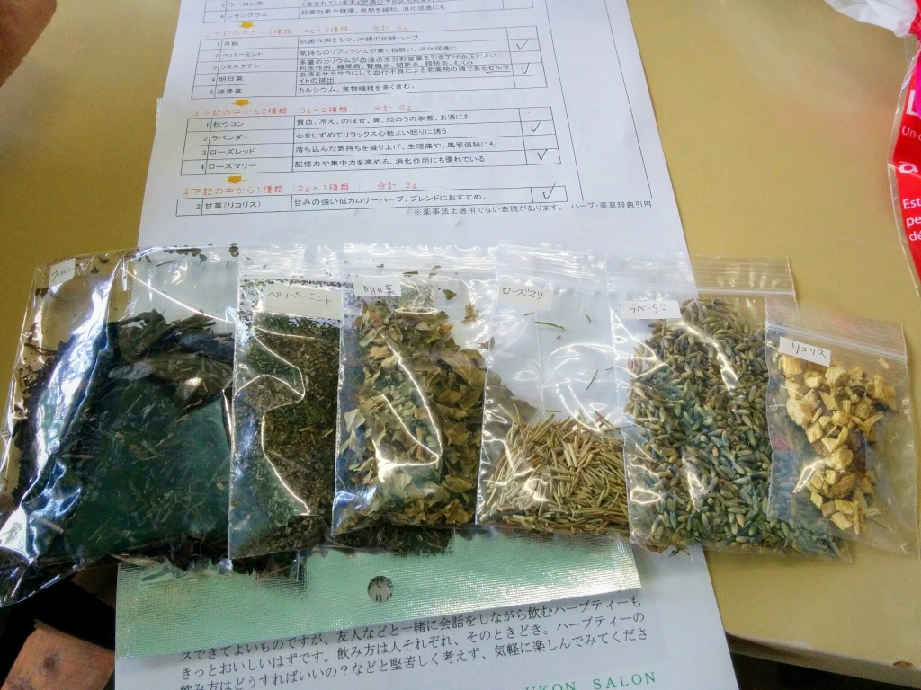 ヘルシーランチをいただきながらたっぷりトーク。皆さんそれぞれにチョイス&ブレンドしていただくハーブティーに、自家製ケーキなど、1時過ぎ〜6時までたっぷり4時間以上の上質な時を過ごしました。