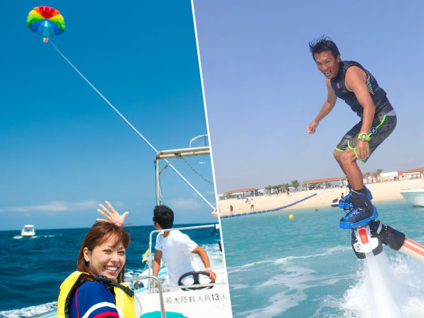 夏の沖縄!人気のパラセーリング特集♪ 日本ではここだけ!恩納村驚きの200mパラセーリングや感動の慶良間(那覇発)パラセールで絶景の空中散歩を楽しもう!北谷・中城湾・恩納村・本部・糸満まで沖縄パラセーリングの 体験ツアーが満載!スマホで簡単・格安予約♪最安値!お一人様5,000円よりキャンペーン実施中!! 人気のフライボードのセットプランも好評!!