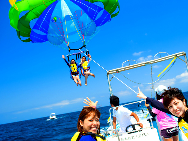 ぽかぽか陽気で気持ち良い♪沖縄の海を空から一望できる、大人気のアクティビティ「パラセール」 パラセールとは「パラシュートセーリング」の略称でパラセーリングともいいます。 パラシュートをボートでひっぱり、上空に上げて空中散歩を楽しめる大人気のマリンスポーツです☆ 爽快感抜群ですよ!皆様の素晴らしい旅の思い出づくりをお手伝いします! 料金【現地払い】 お一人様 6,000円 お連れ様の乗船のみは2,000円。 ※当日の予約状況によりお断りする場合がございます。