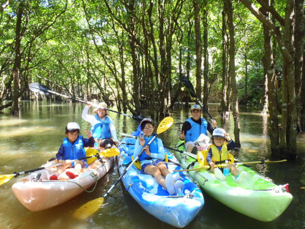 静寂な川と開放的な青い海の2つのフィールドをツーリング。異なる環境で変化が楽しめ るオリジナルツアー。マングローブではカニやトビハゼなどユニークな生物を観察できる。赤ちゃんからおじいちゃんおばあちゃんまで一緒に行けるツアーです。目の前に広がるマングローブ原生林の世界。波のない静かな川面をゆっくりと進みます。奥の干潟にはカニをはじめとする生き物たちがいっぱい!わくわくしたりほっとしたりの時間をお過ごしください。