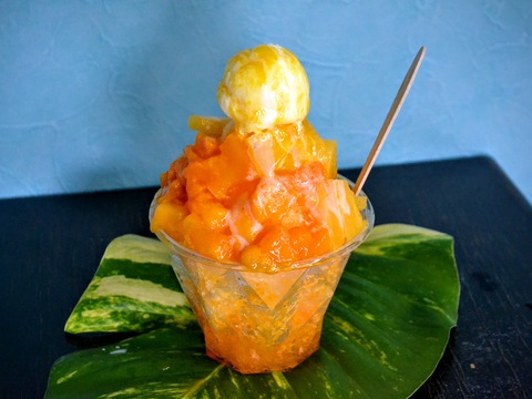 その上から、自家製のマンゴーソースと練乳がかけられていて、生産者直営のお店ならではの超贅沢なかき氷となっています