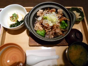 期間限定メニューのチラシにひかれて早速注文!寒い季節にピリ辛はうれしいですよね。左の写真から、「鶏の竜田揚げ鍋あんかけご飯 梅豆腐小鉢つき」 「野菜たっぷり本場韓国産キムチ鍋定食 豆乳バナナプリン付き」です。