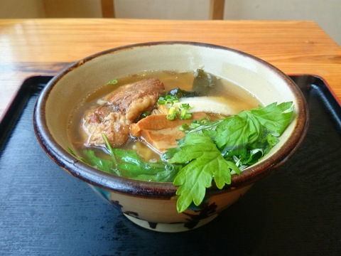出てきたそばは、軟骨ソーキ、三枚肉、スパム(これは珍しい)、かまぼこに〆昆布がトッピングされた贅沢な内容♪
