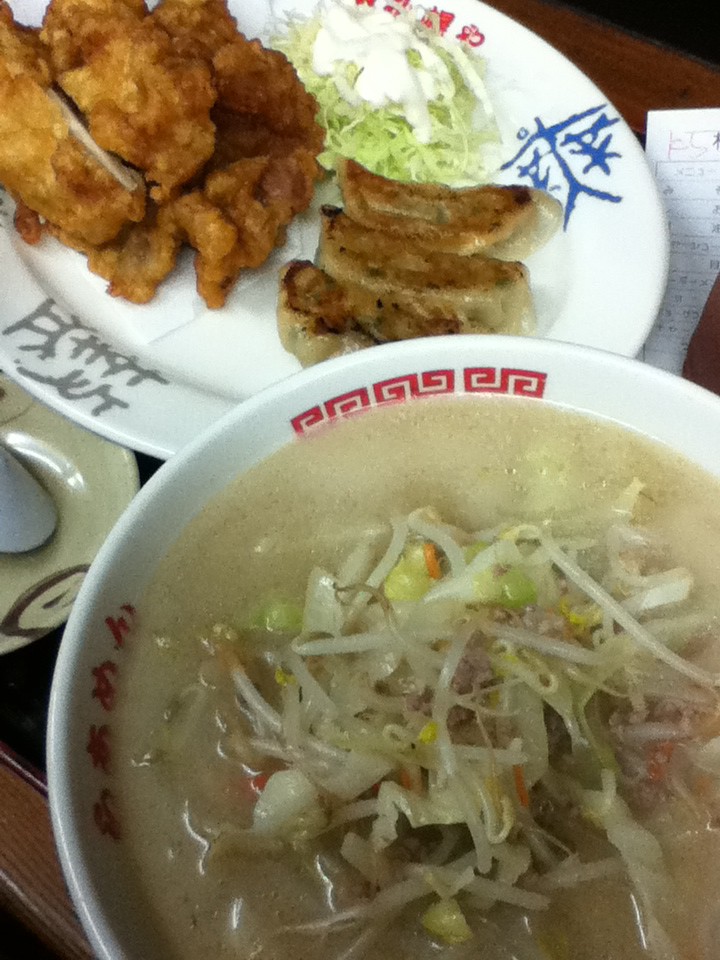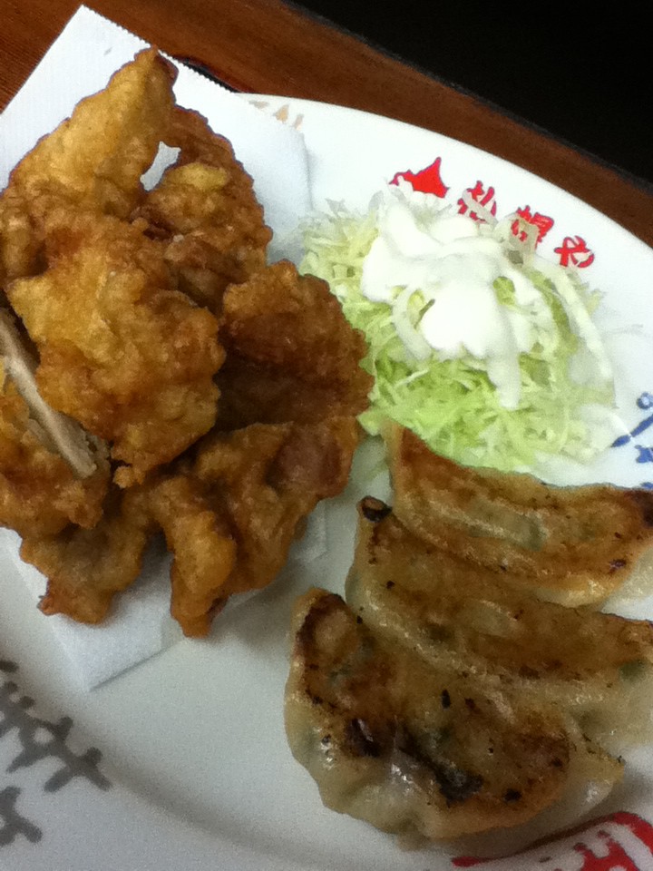 久々の訪問はやっぱり 唐揚げ定食(チキン唐揚げ+半らーめん+餃子3こ)1,000円をオーダー