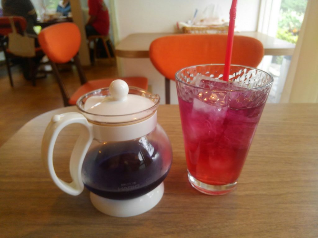 ハイビスカス🌺ティーに、バタフライビーと言った天然のハーブから抽出した物を注いで、くれると、不思議な色にテンションあがりました😍美味しくて、散歩の後、喉を潤してくれました👍