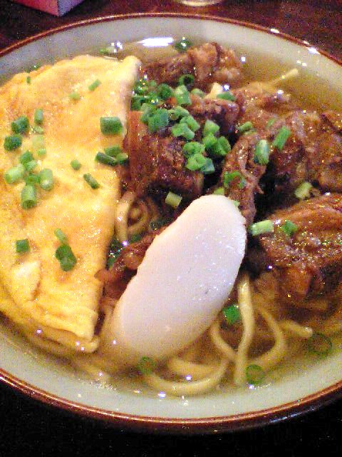 軟骨ソーキはやや濃いめの味付け。肉より骨が多いので、軟骨を食べ馴れない観光客には三枚肉や普通の沖縄そばがオススメ。
