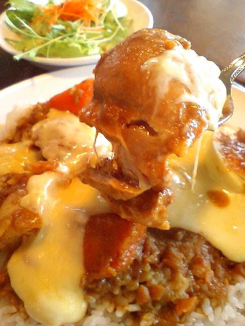 惜しみなくトッピングされたチーズは、ピザみたいににょーんと伸びて楽しい。美味しい。