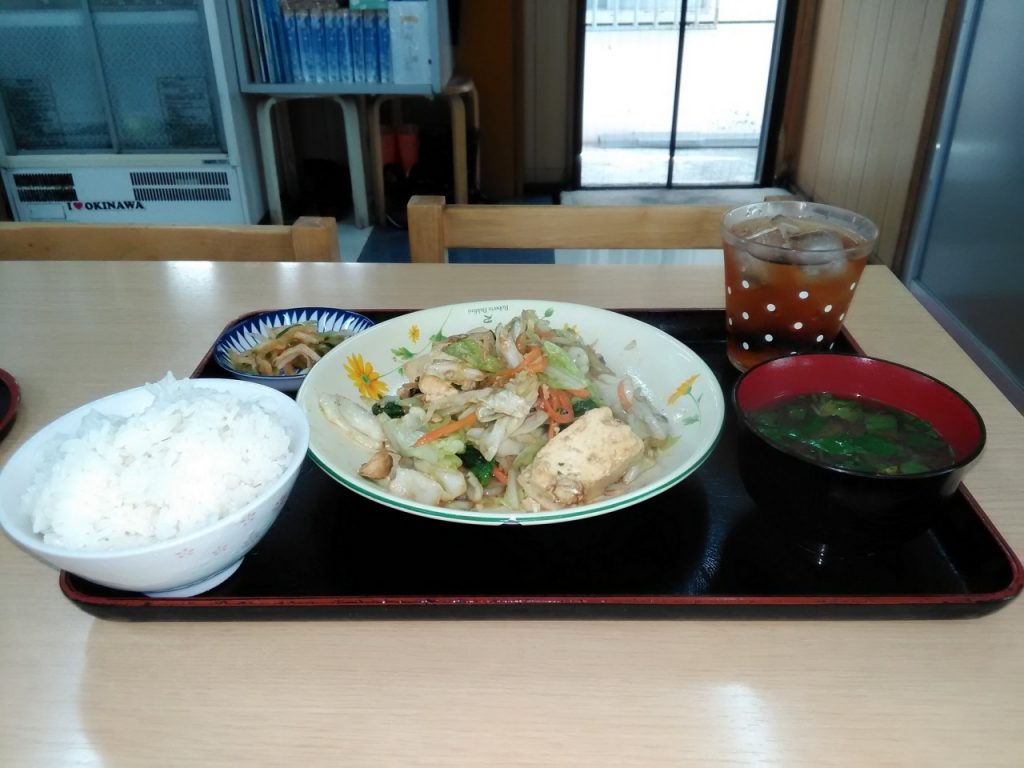 豆腐チャンプルーは、お肉じゃなくてシーチキンが使われていました。島豆腐、キャベツ、にんじん、ちきなー(からし菜)?と一緒に甘辛く炒めてあります。飾らないおかずで、これなら毎日食べたい!と思いました。