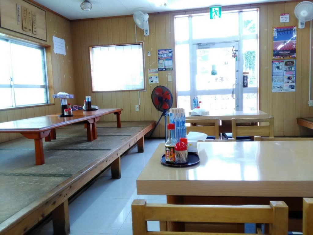 店内はテーブル席と小上り、カウンターもあります。壁掛けの扇風機が懐かしいですね。