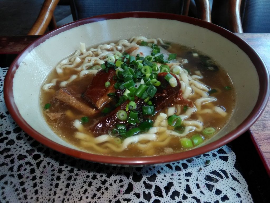 すぐに沖縄そばが運ばれてきました。トッピングは三枚肉とかまぼことねぎです。