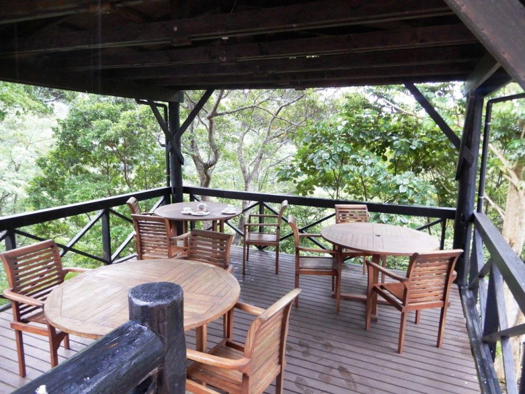 外のテラスでティータイム。