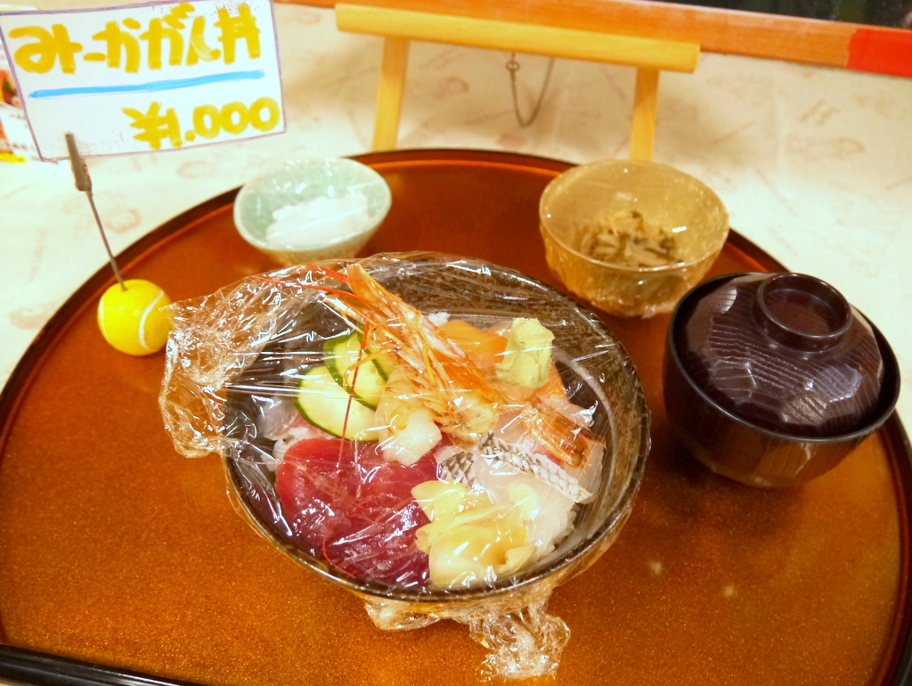 みーかがん丼 1,000円が手頃で美味しそう。漁業協同組合お魚センターは美味しそうだけど、屋外で食べるのはちょっと…という方は、こちら
