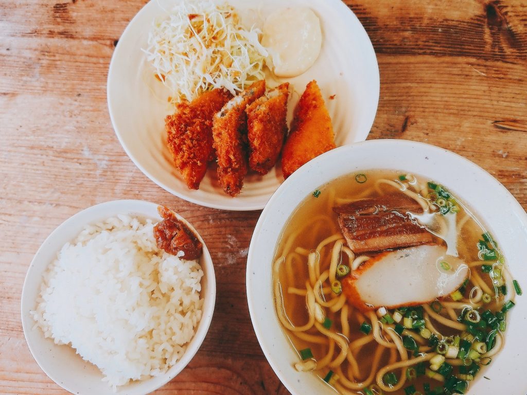 おそばにプラス¥100でライス又はじゅーしぃーがつく
