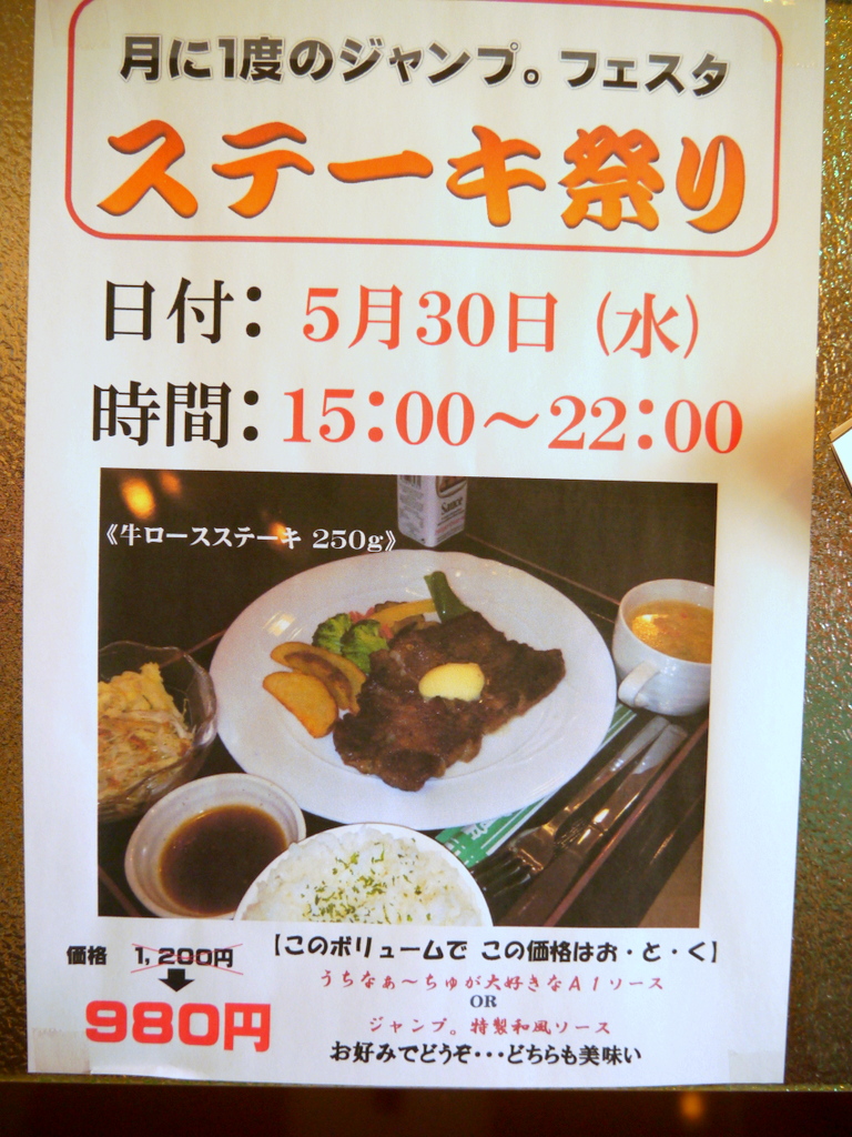 ガチマヤー必見?! ステーキ祭り☆彡(350g980円)本日5/30(水)15:00(午後3時)~22:00限定ですよー