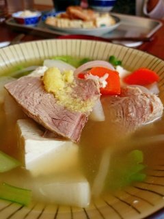 柔らかく煮込まれたお豆腐の上には三枚肉が乗っており
