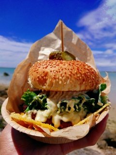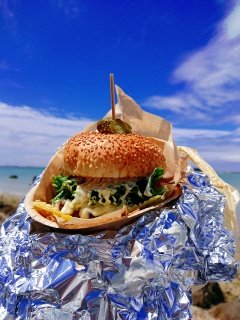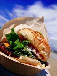 海をバックに🍔三連発٩( ᐛ )( ᐖ )۶