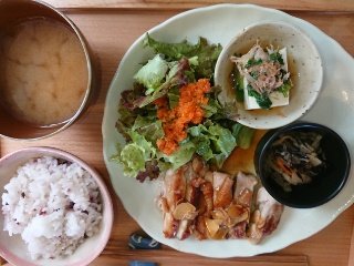 ここのチキンソテー皮がパリパリで中はジューシーで美味しいんです