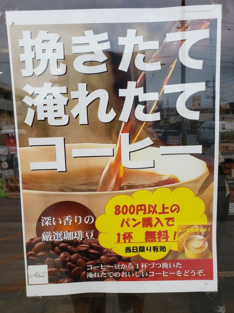 挽きたて入れたてコーヒーが800円以上買ったら一杯無料\(^-^)/