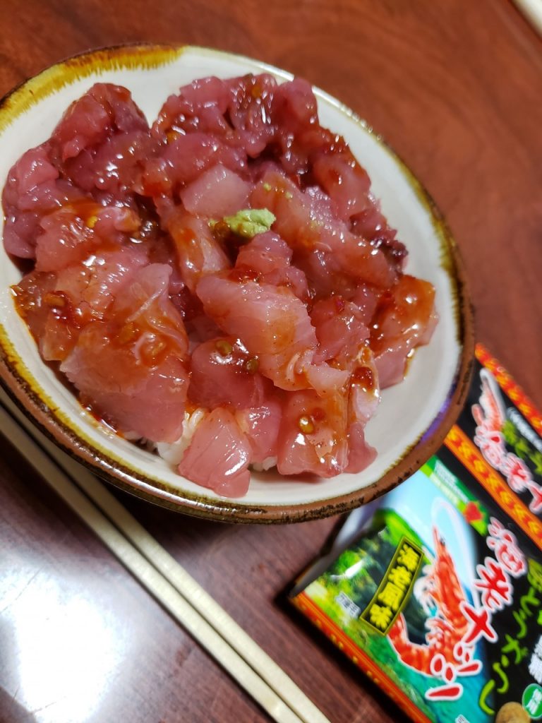 親父が、釣りたての、まぐろ丼。