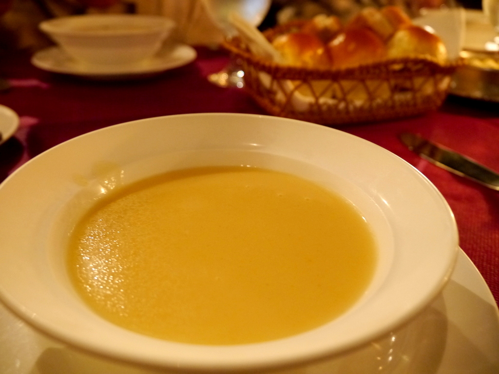 料理はスープ・サラダ・パン・ライス・デザート・ドリンク(ティーorコーヒー)がセット。(通常はパンorライス??)