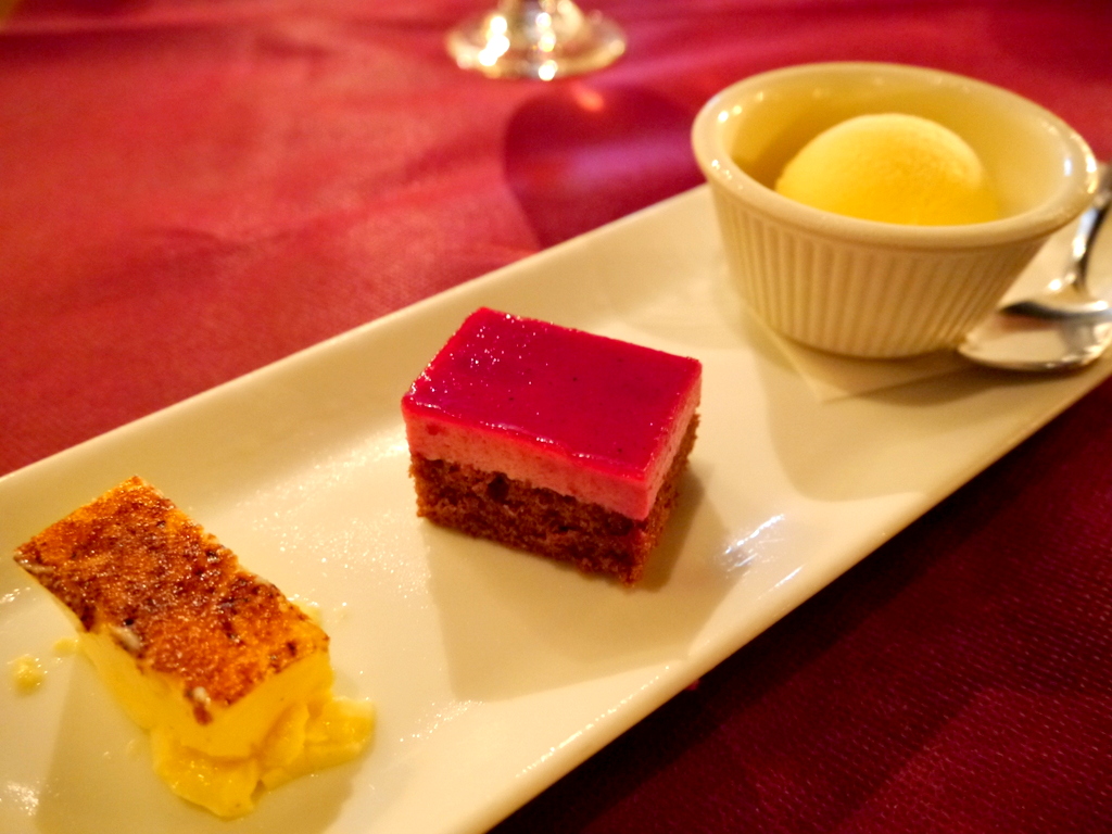 デザートはカスタードプリン、なんとかムース?、バニラアイスだったと思います。