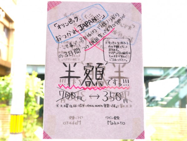 オリンピックおつかれJAPAN! …って事で、8月16(木)~8月18(土)の3日間つけ麺風生パスタが半額ですっ!!!
