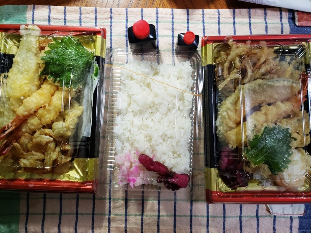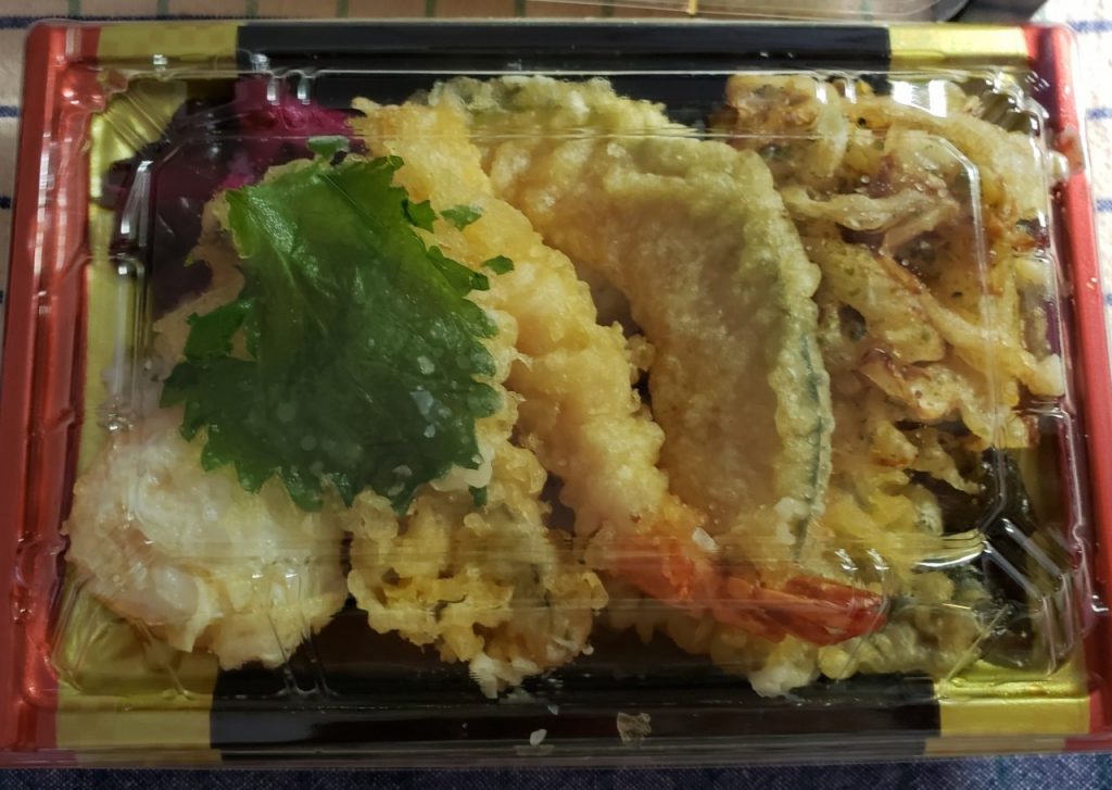 えび・白身魚・かき揚げ・海苔・かぼちゃ。