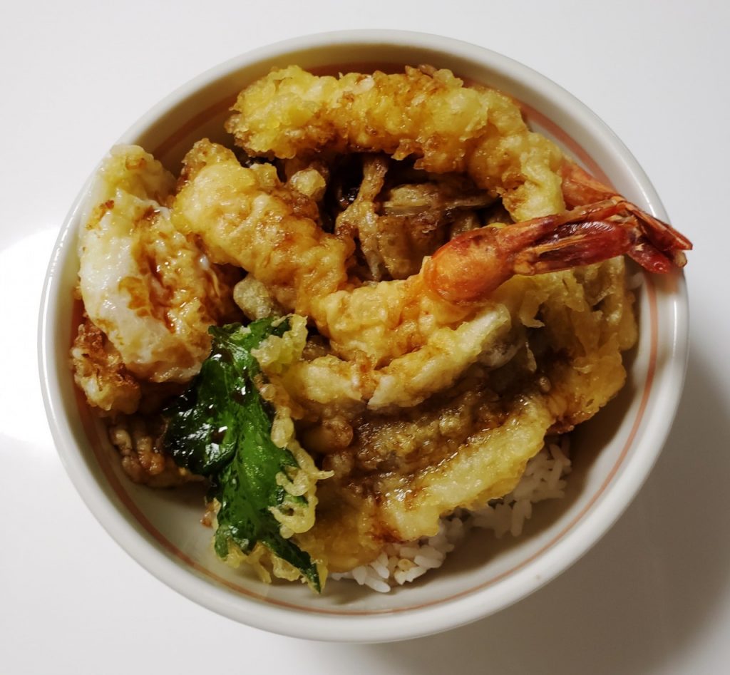 えび・あなご・かき揚げ・しめじ・海苔・かぼちゃ。