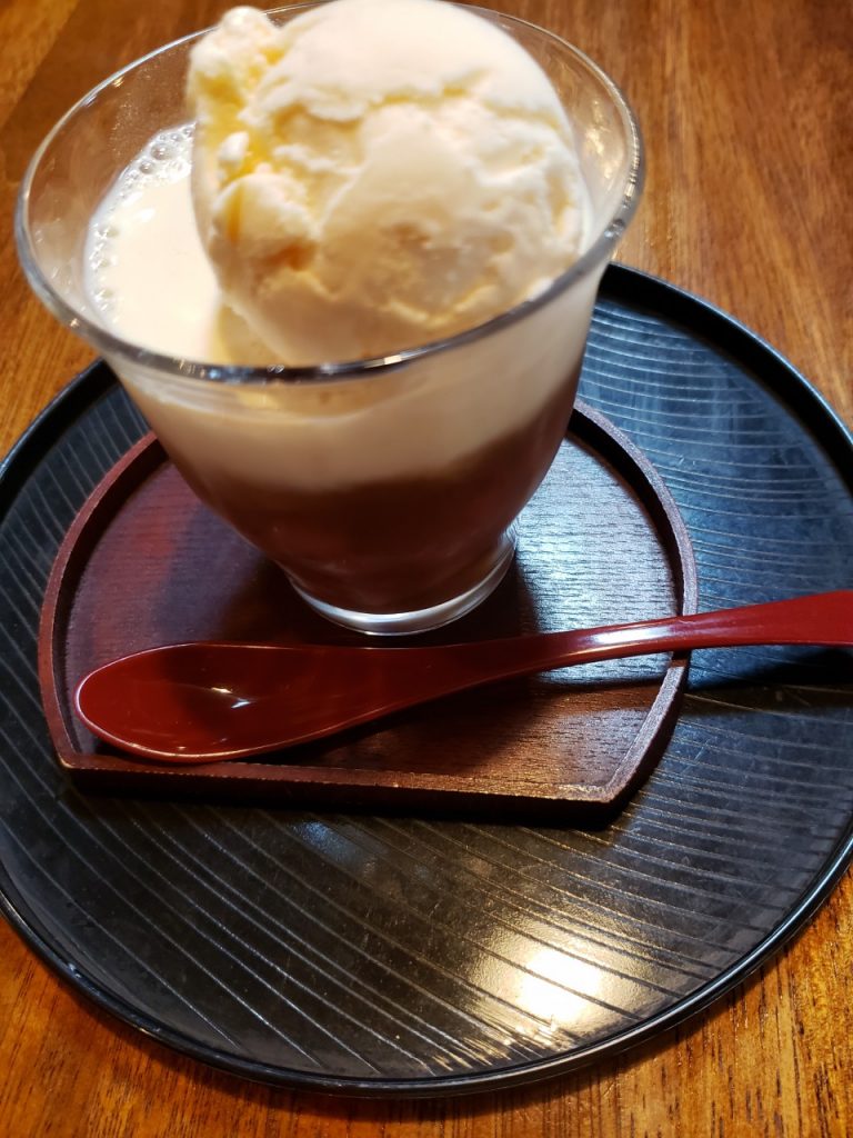 大豆丸ごと豆乳入りクリームぜんざいも、ブルーシールアイスが、上に乗っていて、大豆も、程よい甘さで美味しかったです。
