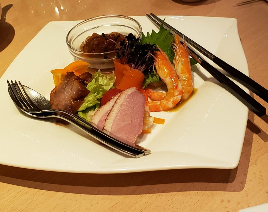 五目前菜、ズワイガニのスープ、エビとイカの蒸し物、