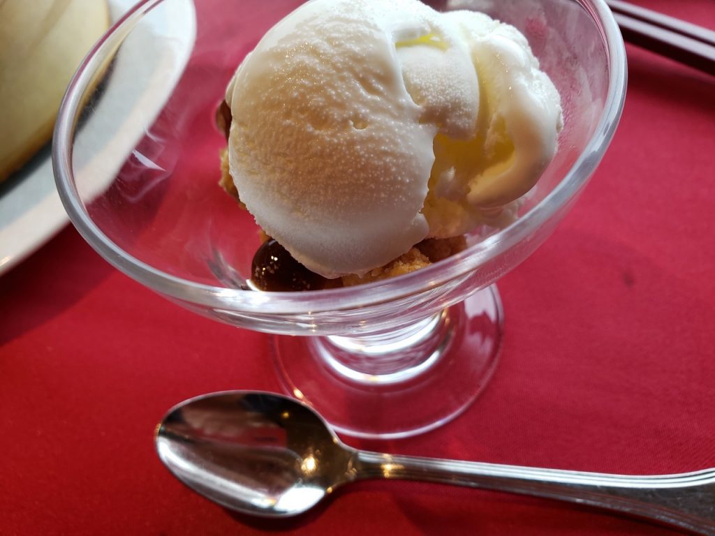 なかでも タピオカ入りパフェ。ココナッツアイスがおいしい。