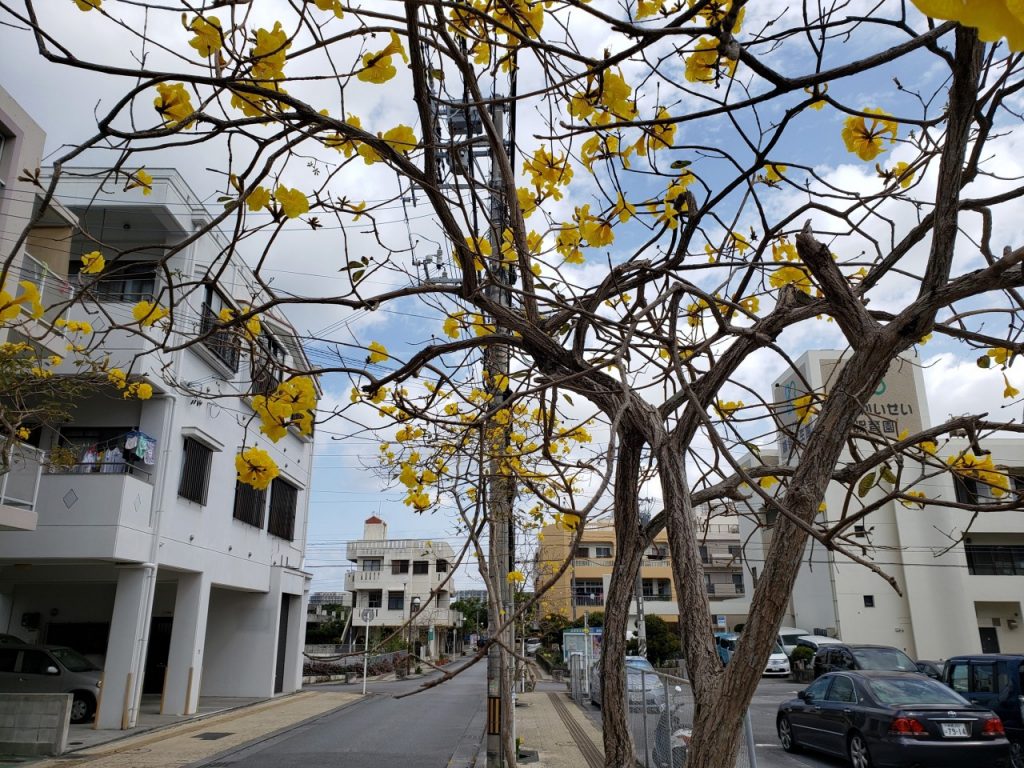 小禄の住宅街を歩いていたら イッペー並木通りがありました。 桜が終わり 黄色いお花が花盛り。 気持ちがいい 和名はコガネノウゼン。