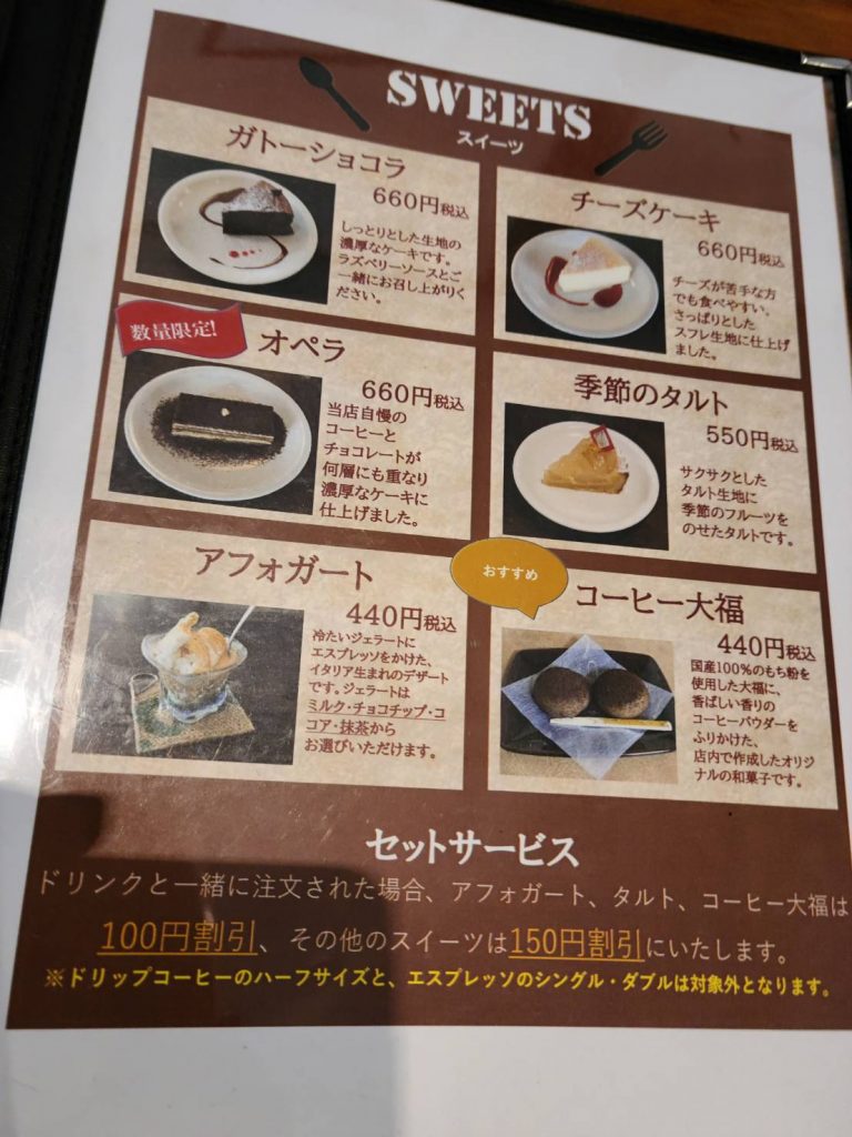初めてですか?と店員さんに聞かれ、はい!と返事をすると、メニュー表を持参し、珈琲の種類を詳しく説明してくれました。