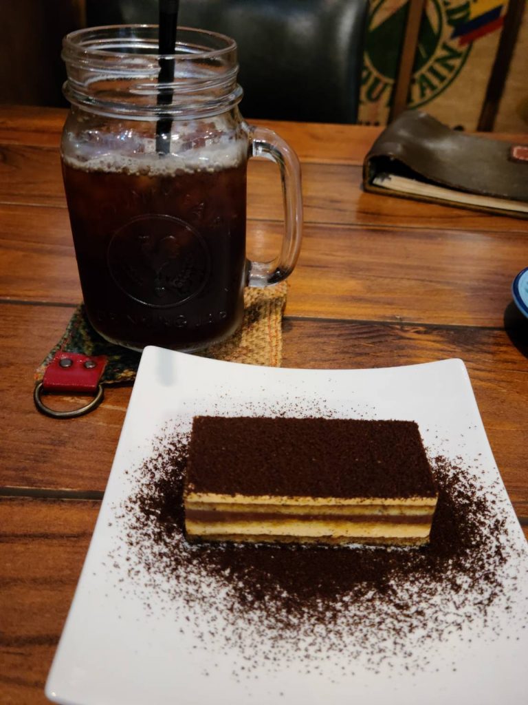 チョコとコーヒーが、何層にも、重ねられており、挽きたてのコーヒーが、ちりばめられてます。