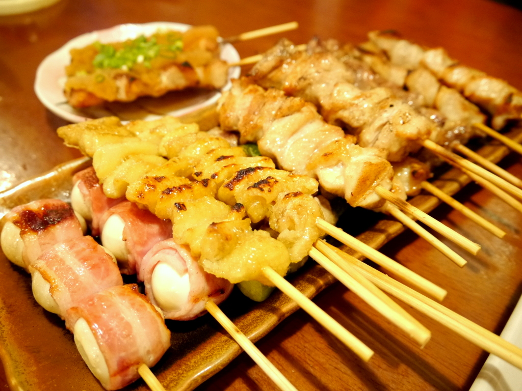 我々が初めに頼んだのは、やきとり、かわ、ぼんじり、トントロ、うずらベーコン、和風トントロ、ハツ、オクラ豚バラを各2本ずつ。