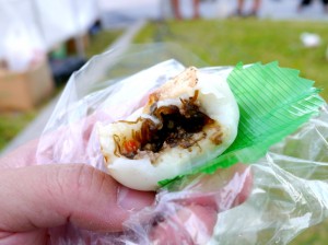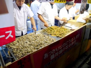 牛中身にはちょーー後ろ髪ひかれたけど…食べ過ぎないように、我慢しました。左が味付け前、味付け後が右らしい。(白いの欲しいと言ってたお客さんに説明してた)椀飯振舞に試食やってたから1口だけつまめばよかったな(^^;