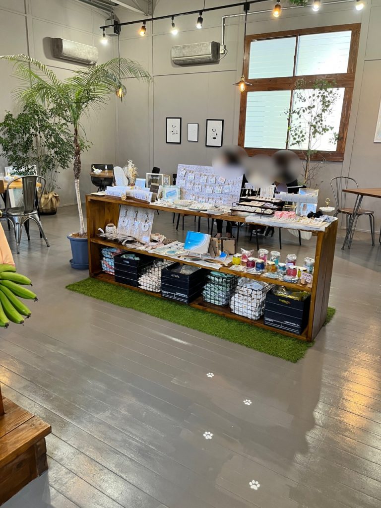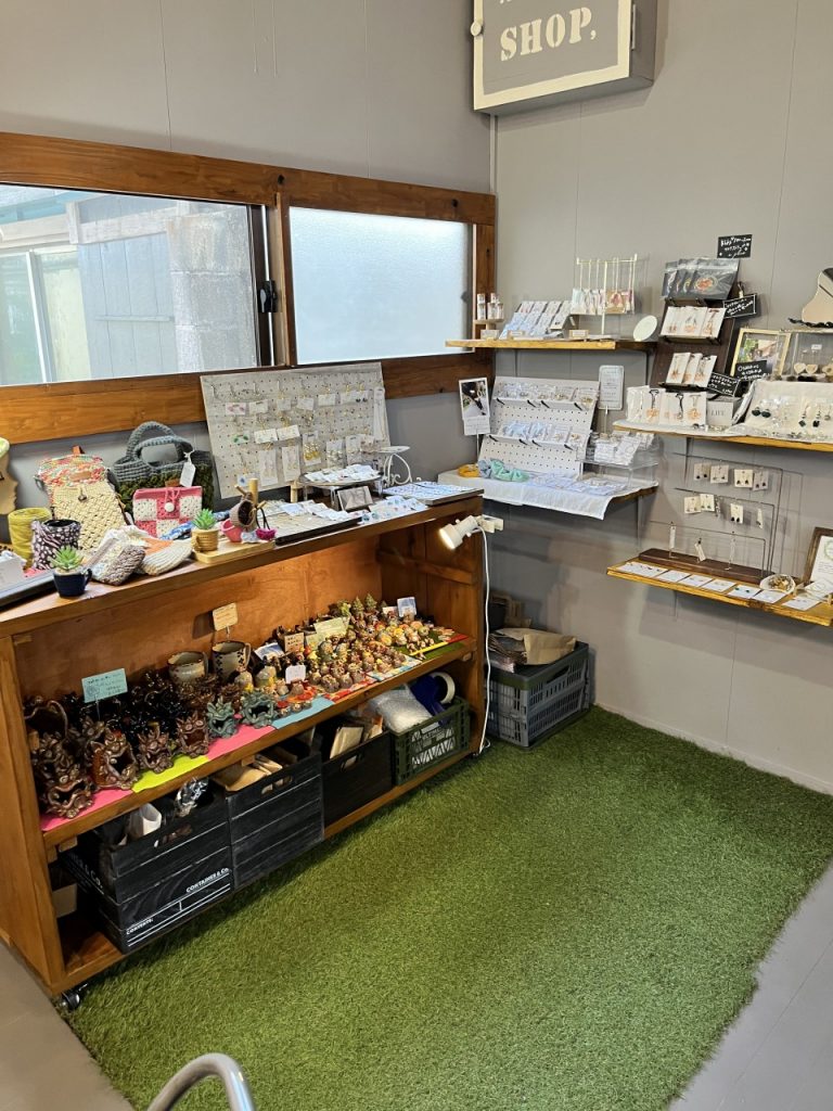 カウンター席・テーブル席・ハンドメイド作品コーナーがあります。