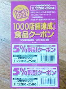 レポーターのchotchanです。 我が家がよく買い物しているイオンが1000店舗達成ということで25日(日)まで大謝恩祭やってます!