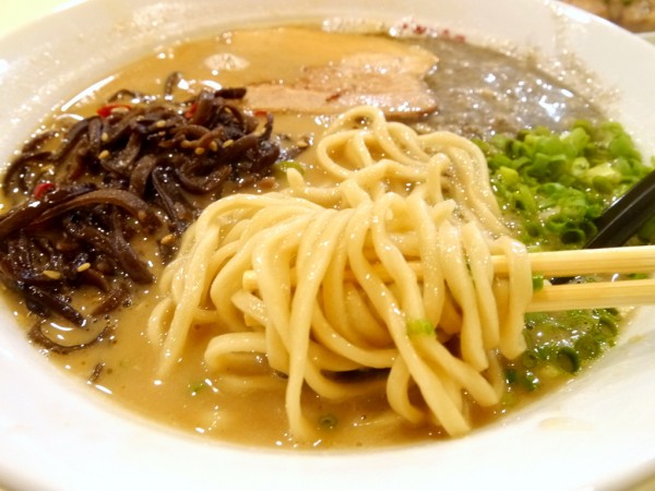スープがかな~~り濃厚(濃い味ではない)。豚骨をよく煮込んでいるみたいで、すごーく白濁ドロっとした仕上がりになっています。