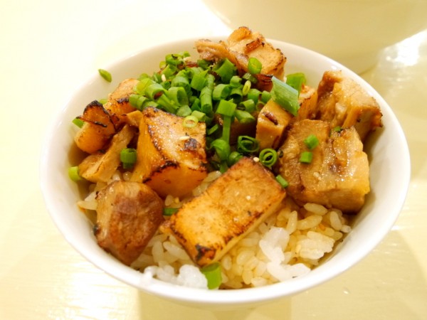ミニ焼豚どん は、角切りチャーシューがゴロゴロ。醤油系のタレがかかっています。