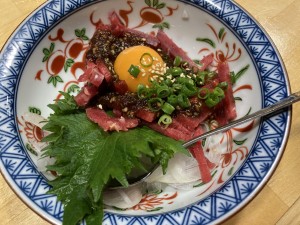 この日はサーモンでした。脂ののったサーモンをポン酢でさっぱりいただきます。