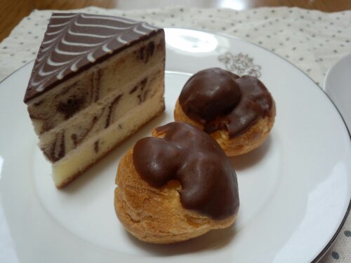 早速、ショートケーキ350円とマーブルチョコ150円、プチシュークリーム1個50円を買いました
