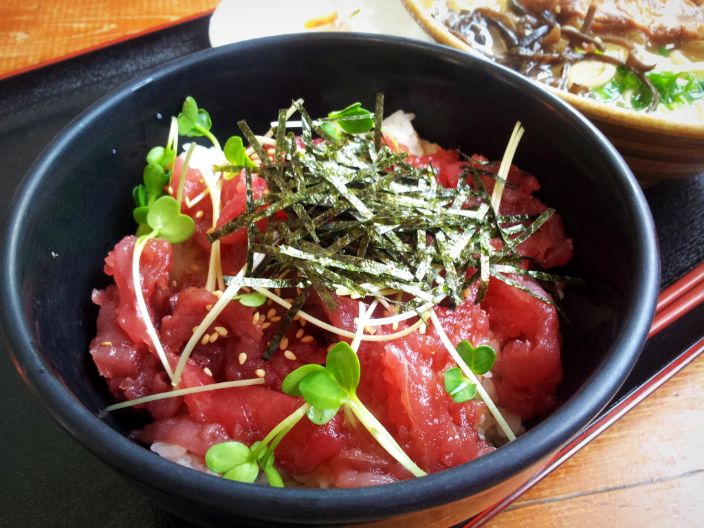 本日は マグロ中落ち丼 680円(丼・そば小のセット)に興味深々。