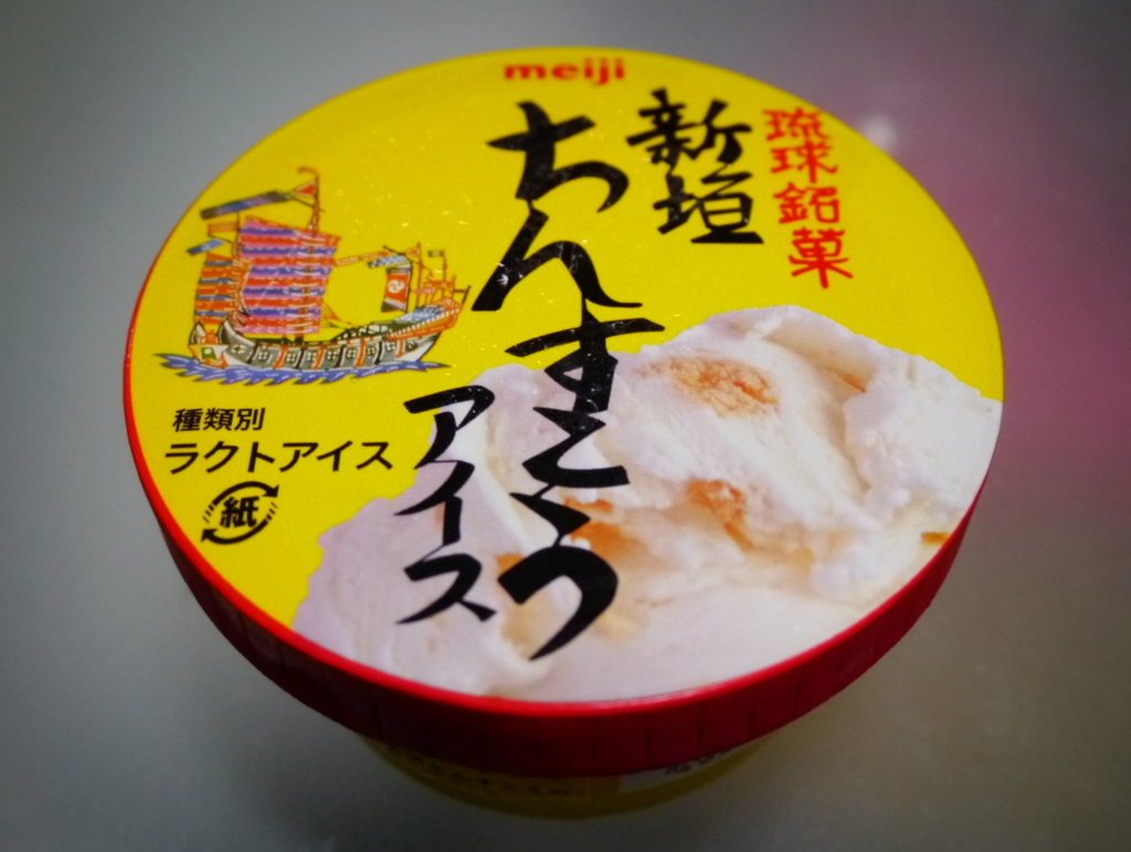 “塩バニラ味のラクトアイスと琉球銘菓新垣ちんすこうのおいしい組み合わせをお楽しみください”