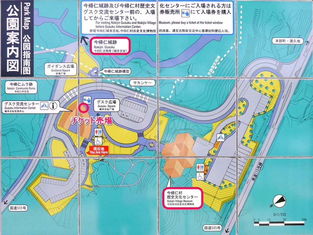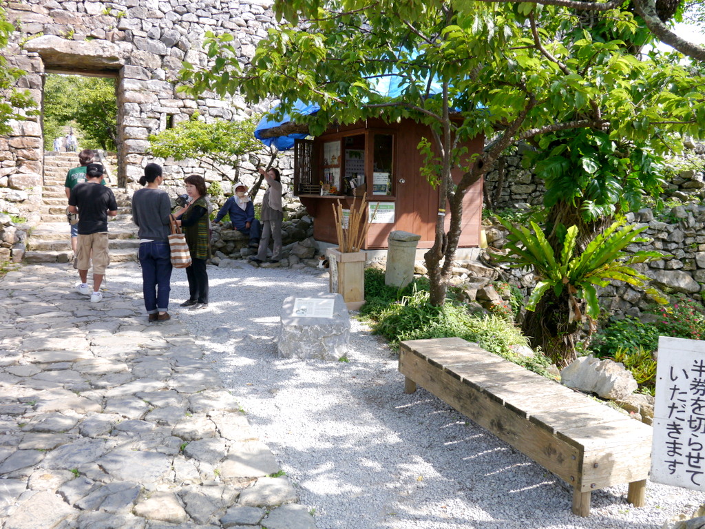 今帰仁城跡の門前までの散策は無料ですが、城跡内への入場は、大人400円(小中学生300円、小学生未満 無料)のチケットを購入します。チケットには公園併設の「今帰仁村歴史文化センター」観覧料が含まれています。