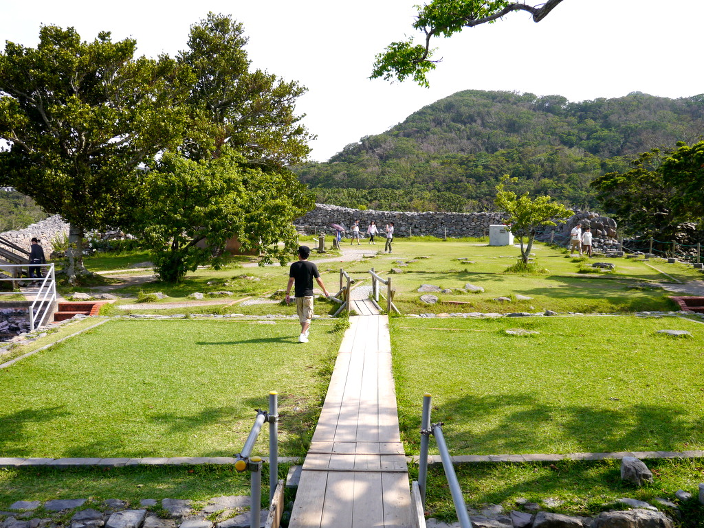 七五三の階段を登った大庭は、様々な祭事・儀式を行った場所。首里城の御庭(首里城正殿前の広間)と同様の役割をもった場所と考えられています。ここ大庭を囲むように、階段より正面に正殿(主郭)、右側に南殿、北側の一段高い所に北殿跡があったと考えられています。