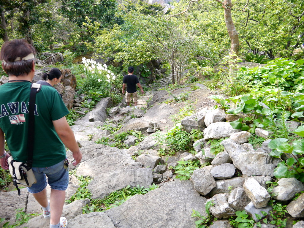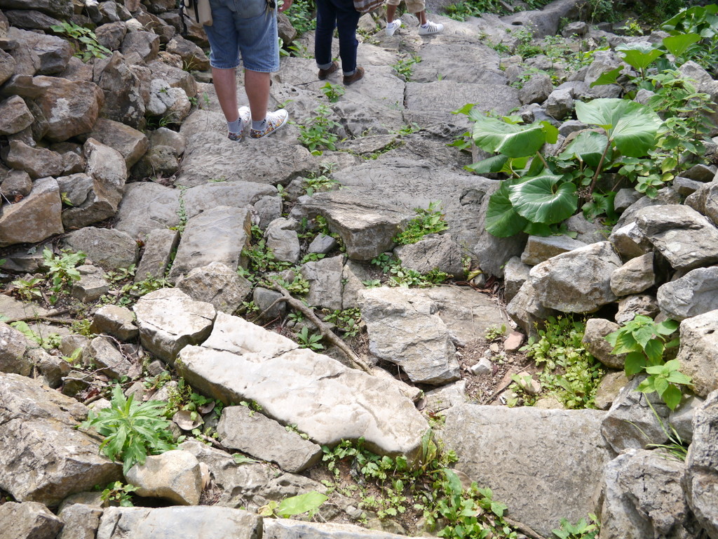 最初に登った七五三の階段は、戦前に作られ、戦後修復された参道でした。直線の七五三の階段とは対照的に、曲がりくねった旧道の石畳があり、当時の空気に触れることができます。ただし、足場はあまりよくないので、通る際はご注意ください。