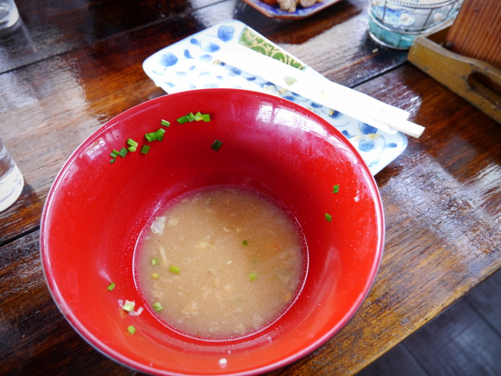 かき揚げは工夫して食べられるよう、テーブルにソースも用意されていますが、そういう問題じゃ…。
