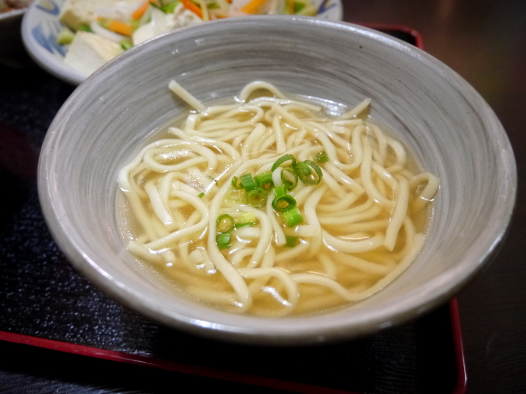 チャンプルーの野菜と、そばつゆ(スープ)はもう少し入れてくれてもいいと思う。